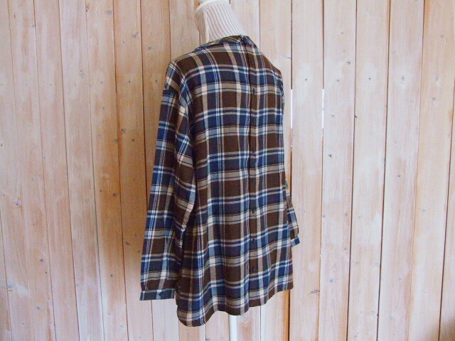 70%OFF・チェック柄 うしろボタン プルオーバー(ブラウン×ネイビー)