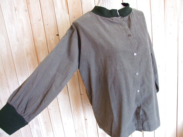 50%OFF・リブ使い コーデュロイ 2WAYブラウス(薄グレーグリーン×モスグリーン)