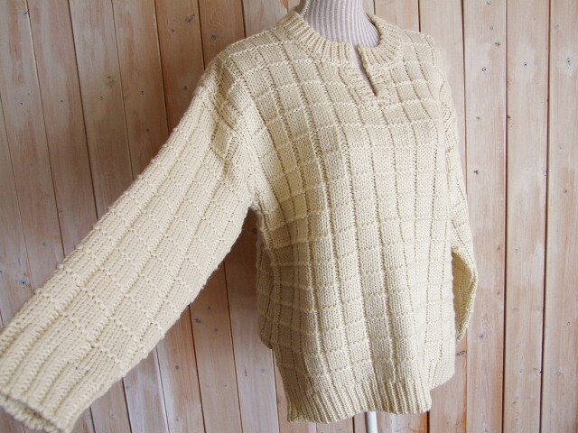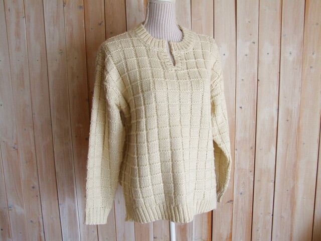 60%OFF・スクエア柄 キーネックニットプルオーバー(アイボリー)