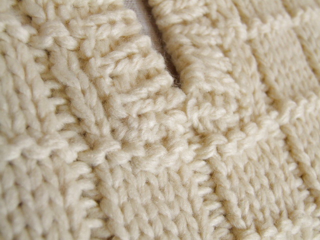 スクエア柄、ざっくり編みローゲージのニットプルオーバー。