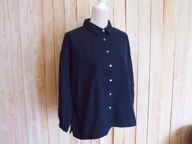 10%OFF・二重浅襟ツイルブラウス(ネイビー)