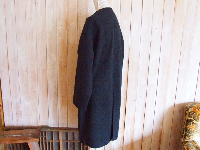 フロントポケットがポイントのシンプルなノーカラーコート。