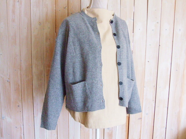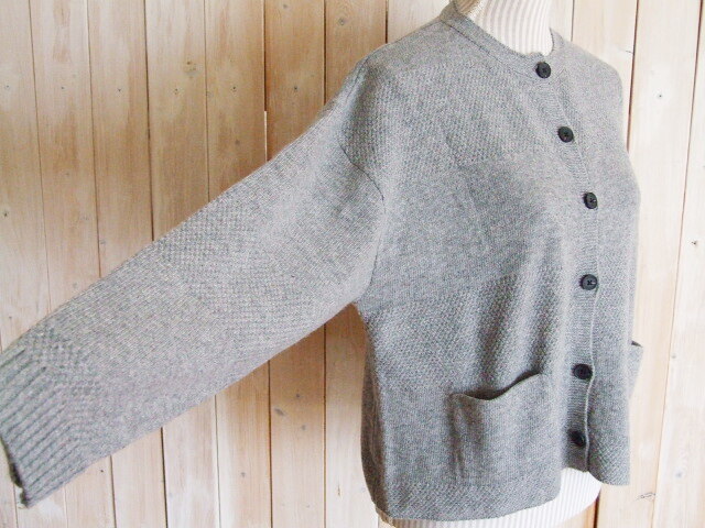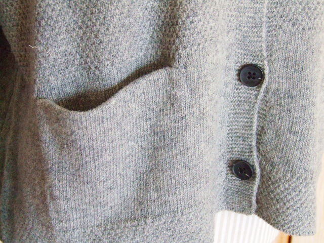 ウール混、ボタンが並んだフロントポケットのニットカーディガン。